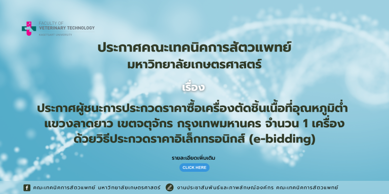 ข่าวประชาสัมพันธ์ประกาศคณะเทคนิคการสัตวแพทย์ เรื่อง ประกาศผู้ชนะการประกวดราคาซื้อเครื่องตัดชิ้นเนื้อที่อุณหภูมิต่ำ แขวงลาดยาว เขตจตุจักร กรุงเทพมหานคร จำนวน 1 เครื่อง ด้วยวิธีประกวดราคาอิเล็กทรอนิกส์ (e-bidding) ่ 9 ธ.ค. 2568่ 9 ธ.ค. 2025อ่านต่อ